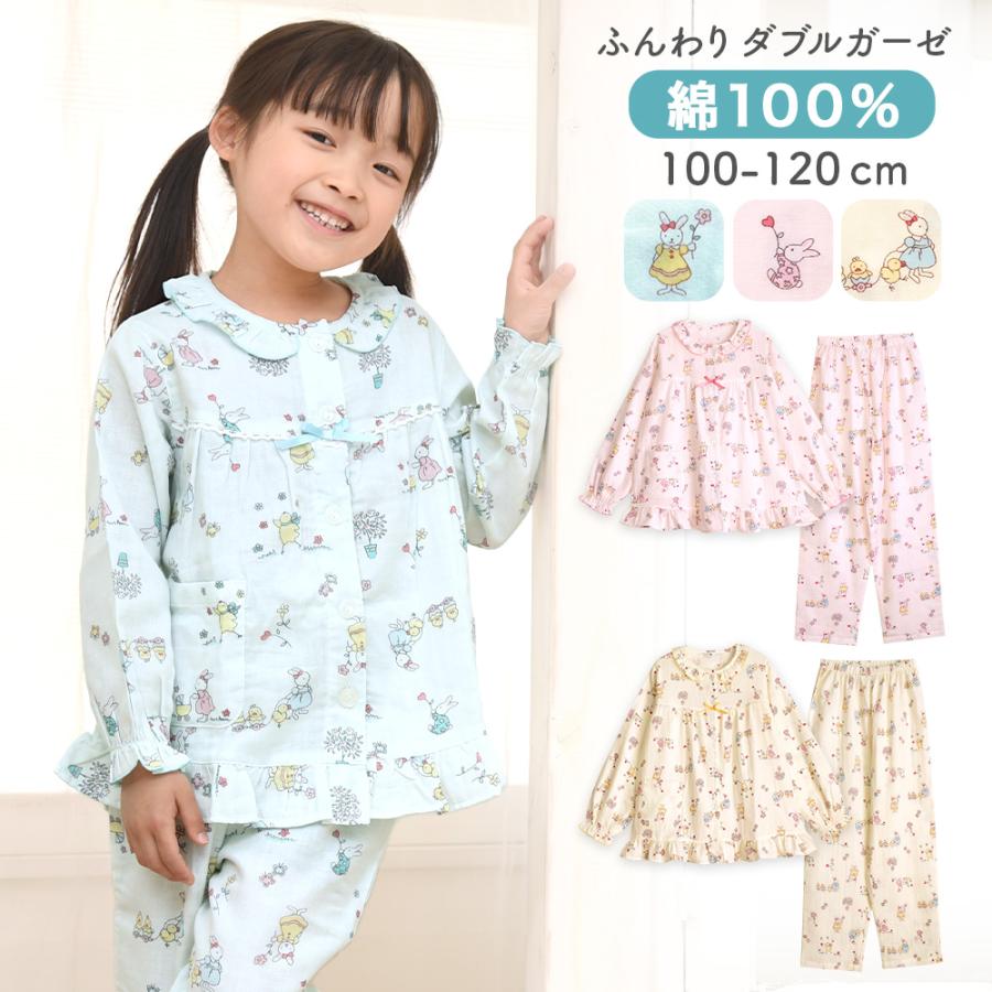パジャマ キッズ ダブルガーゼ 春 夏 長袖 綿100 子供 フリル かわいいうさぎ柄 ピンク サックス 100 110 1 おそろい Gcx294 パジャマ屋さん 通販 Yahoo ショッピング